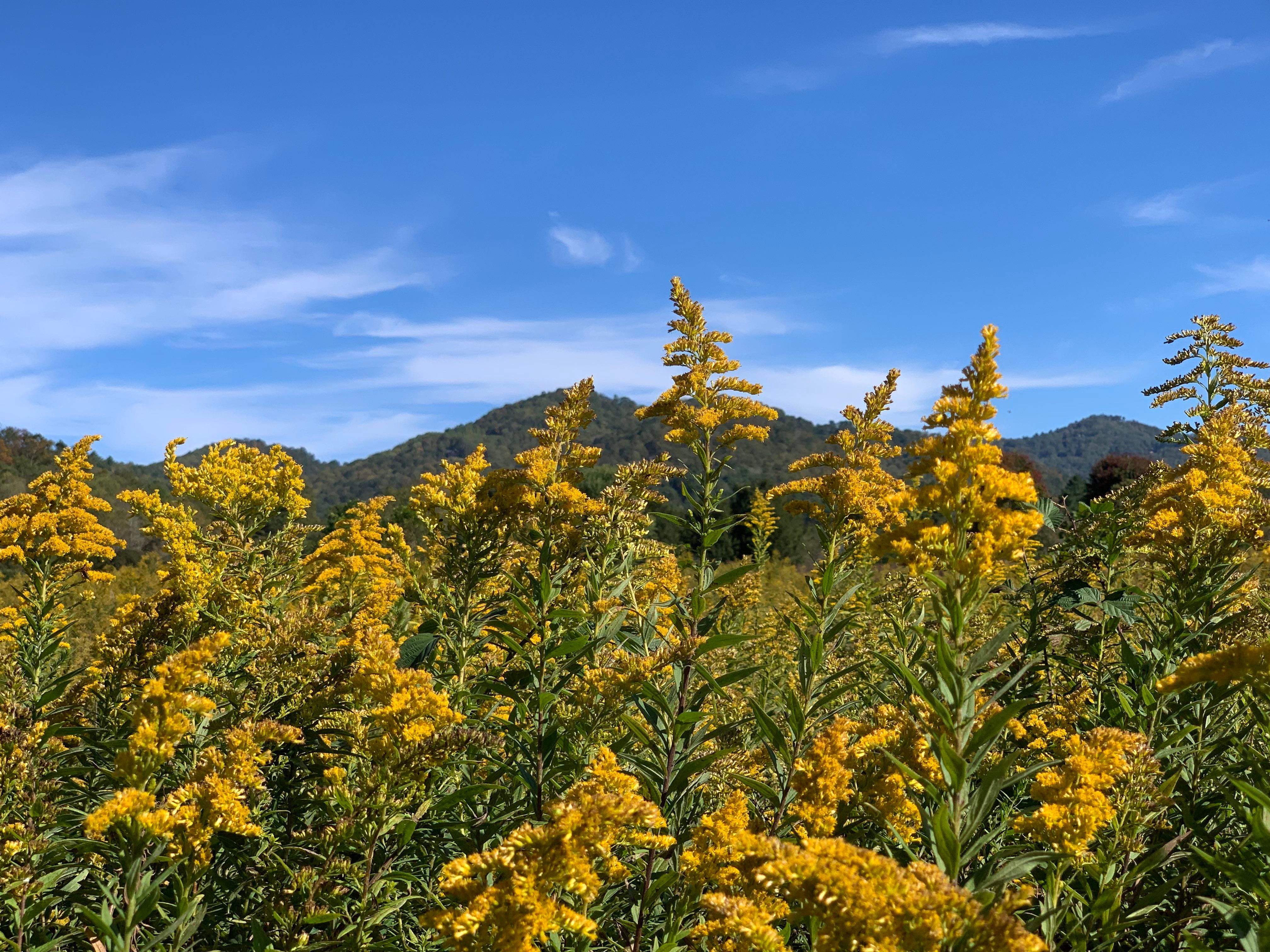 Restoration In the valley between Banner Elk and Boone, we walk with friends and a hound with a wayfaring soul. The tended path winds like a labyrinth through an open meadow, under water last October. Hung in a mature oak, a sign marks how high the river rose. Now, a year after hurricane Helene, the field blazes in every shade of yellow, flutters and hums with butterflies, honeybees and swooping swallows. I am lagging behind, day-drunk on flitting monarchs and an explosion of pale-lavendar asters. My friend is right here with me, her sky-blue eyes, also wide with wonder. The goldenrod is taller than us. We slow down to listen for some wild thing—maybe a bird, or is it a frog, singing from deep inside this tangle of nectar, seed and shelter. We leave with mended hearts, anointed by milky sap and fuzzed hitchhikers.